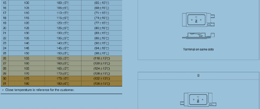 東莞市愛多電子公司長期代理銷售MCS、BTK的BM系列各型號溫控開關,有BM1、BM2、BM3三個系列,BM-1分BM-1W(高阻型號)、BM-1U(低阻型號)、BM-1S(自持式)三類,一般都是使用BM-1S系列。BM2(小體積)分為BM-2W(高阻型號)、BM-2U(低阻型號)、BM-2S(自持式)三種,BM-3系列請來電索取相關資料。端子型號有同向A跟異向B之分,如型號為:BM-1S-065A就表示為BM-1系列的65℃同向端子,BM-1S-065B就表示為BM-1系列的65℃異向端子溫控器。溫控器溫度控制范圍寬,從最低30℃至最高溫度180℃,每間隔5℃有一款,有高阻跟低阻之分,耐電流高,更多介紹請電聯。