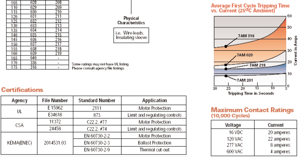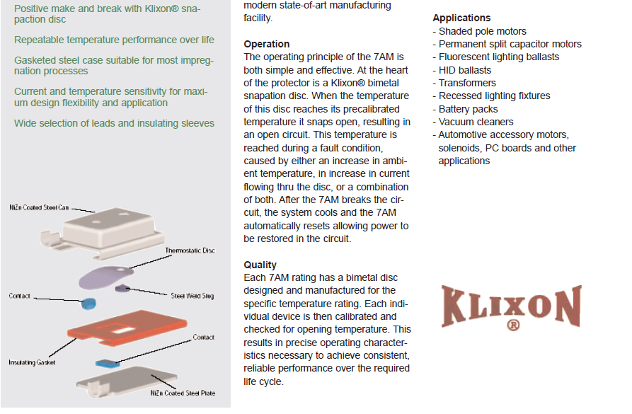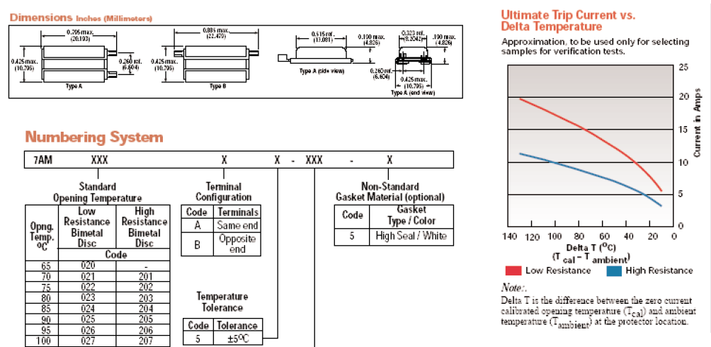 東莞市愛多電子有限公司代理銷售KLIXON/Sensata 7AM系列溫控開關,其具體型號規格如下: