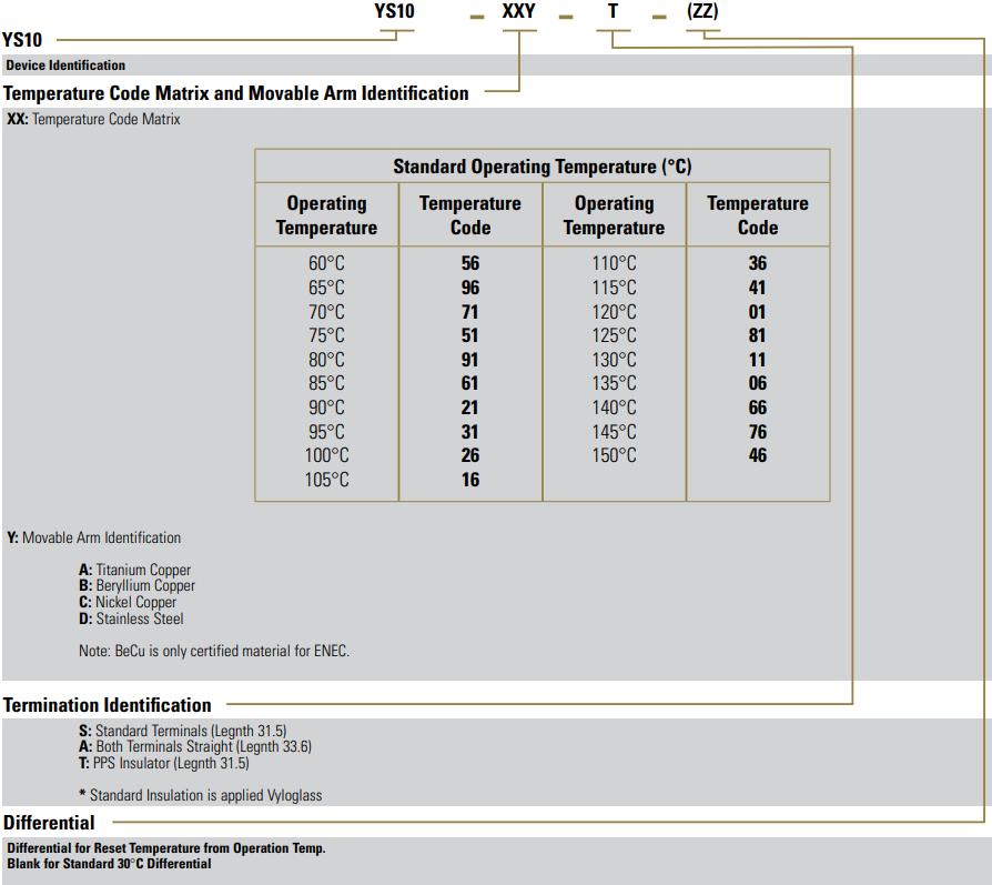 120°C工作溫度、BeCu活動臂、標準端子和30°C差壓。(90°C復位)
