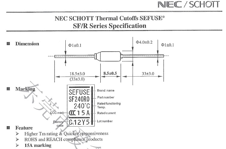Product Name:NEC SEFUSE SCHOTT SF-R Series Thermal cutoff